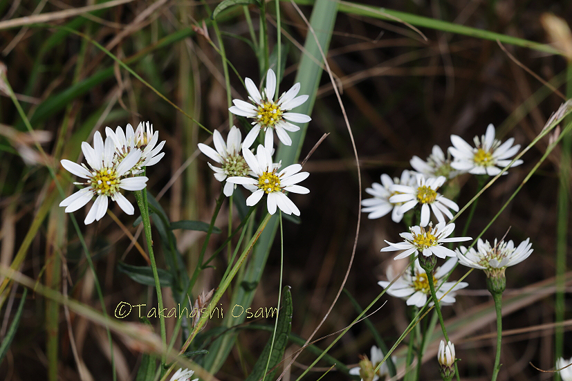 サワシロギクは本州から九州までに分布します。湿地に生えます。咲き初めは写真のように白色ですが、しばらくすると紅色になります。いわゆる野菊のひとつですが、ちょっと地味です。でも、好きな花のひとつです。