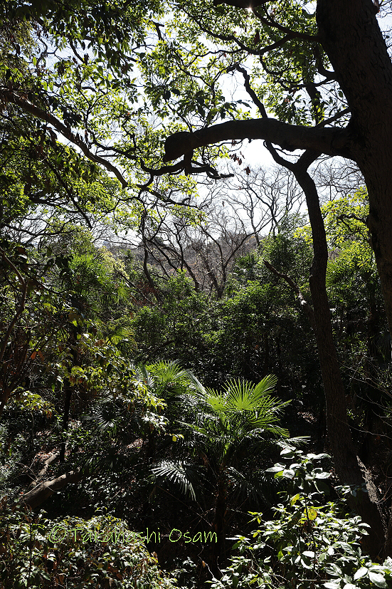 朝の美しい光が入り、常緑広葉樹がキラキラと輝いていました。巨木が多い、とてもいい雰囲気の場所でした。公園の展望地では、東京湾がありました。千葉県の山がよく見えました。