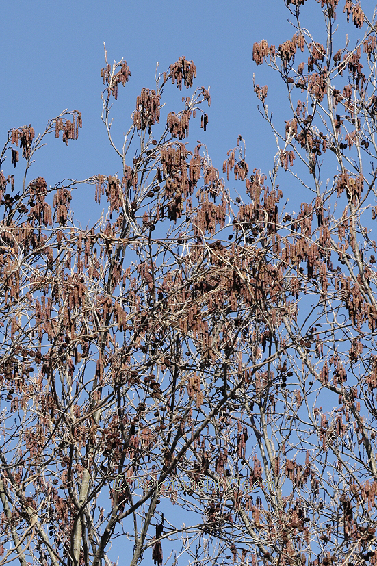 近所の自然公園でハンノキが咲いていました。ブラブラブ~ラとハンノキの雄花はブラブラしています。花粉症の始まりとなります・・・。