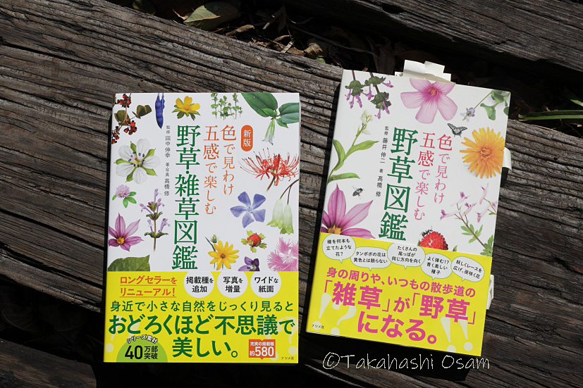 ぜひ、「新版 色で見分け五感で楽しむ野草・雑草図鑑」を手に取ってみていただきたいと思っています。このブログに限り、「新版 色で見分け五感で楽しむ野草・雑草図鑑」の髙橋修のサイン入り本を販売いたします。定価は1,650円です。購入していただければとてもうれしいです。私宛にコメント欄かメールでご連絡ください。