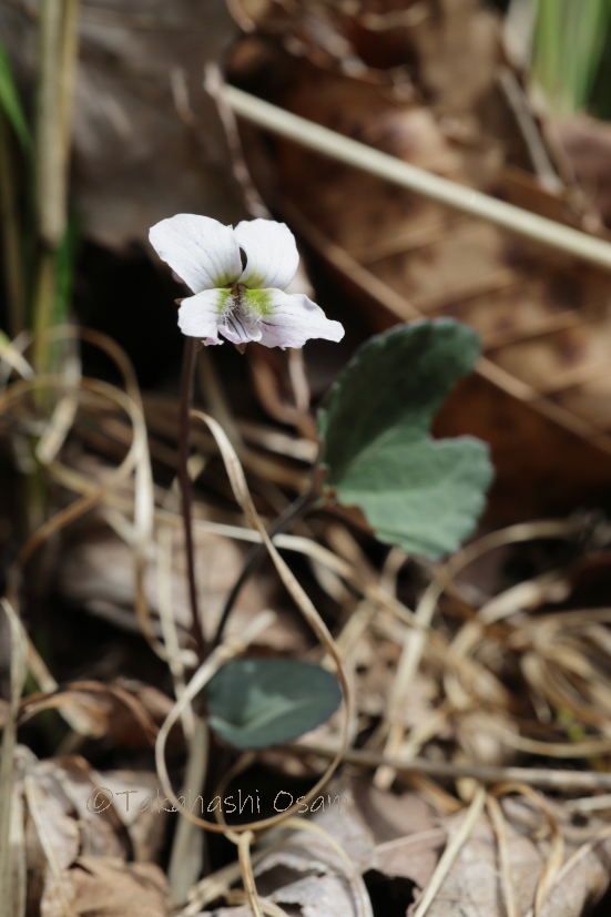 ゲンジスミレの特徴は、葉の形と葉の裏が紫色なところ。ゲンジスミレを見分けるのは難しくはありませんが、自生地が少なく、個体数が少ないのでなかなか見ることが難しいスミレのひとつです。咲きたてでいいゲンジスミレの花でした。