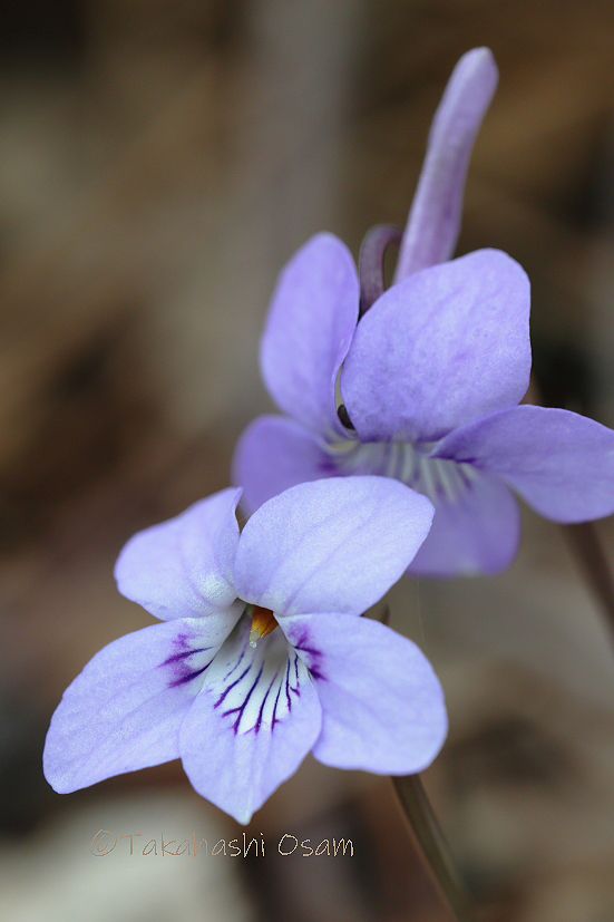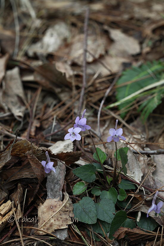 アワガタケスミレは、テリハタチツボスミレに花は似ていますが、葉が大きいテリハタチツボスミレに比べ葉が小さく、なんといっても花の後ろの部分の距がアワガタケスミレは長いのが特徴です。