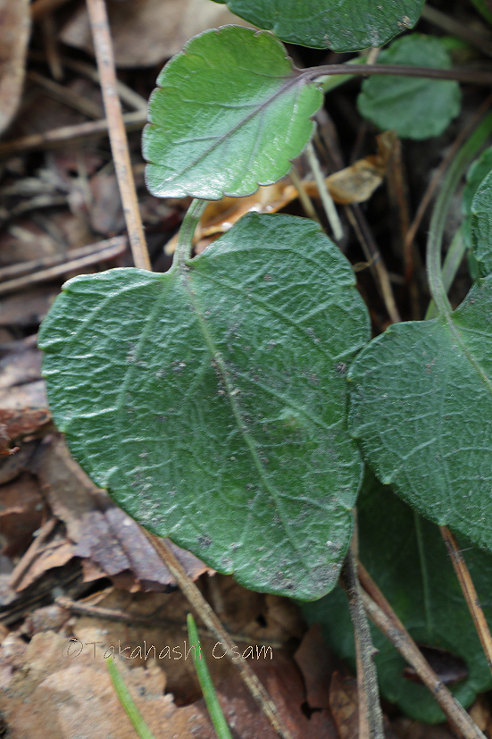 アワガタケスミレは、距が長いナガハシスミレとも花が似ています。しかし、花弁が丸く優しい感じのアワガタケスミレに対し、ナガハシスミレは上弁の反り返りが大きかったり花の雰囲気がキツイです。アワガタケスミレとナガハシスミレの見分け方は、なんといってもアワガタケスミレは葉が小さく、葉の付け根が切れ形であり、硬く葉脈が浮き出ます。ナガハシスミレは越冬葉は大きく、葉の付けがハート形になります。